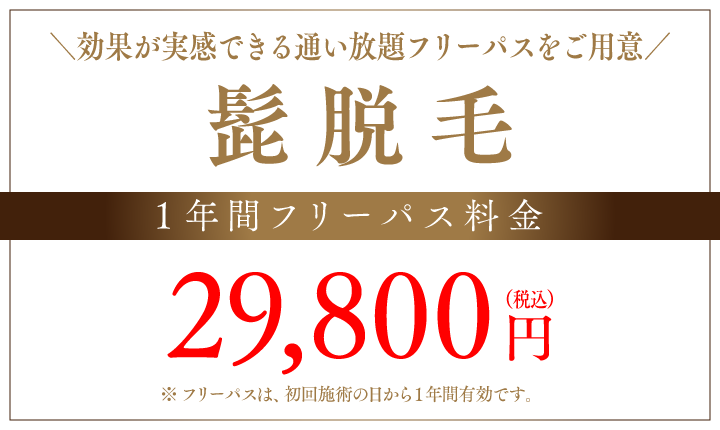 1年間フリーパス(髭脱毛のみ) 29,800円